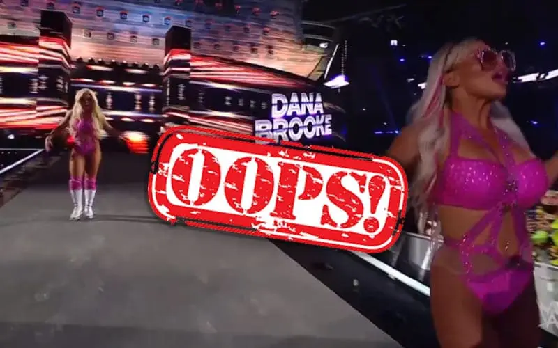 Mandy Rose slipped on her way to the ring, but Dana Brooke had a couple of slips on her own of the wardrobe malfunction variety. There wasn’t anything WWE could do about the wardrobe malfunction, but according to Fightful Select, WWE sent workers out to dry the ramp after Rose fell.