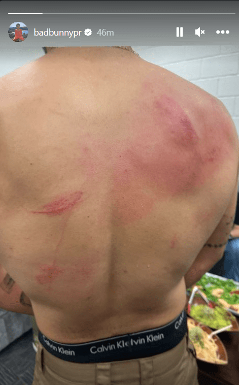Following the conclusion of the match, Bad Bunny took to his Instagram story and uploaded a photo of his back, showing off the nasty battle wounds inflicted on him during the match.