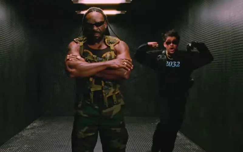 In the video, Booker T is seen posing while Bad Bunny raps. However, Booker T does manage to say his signature “Can you dig it, sucka?!”