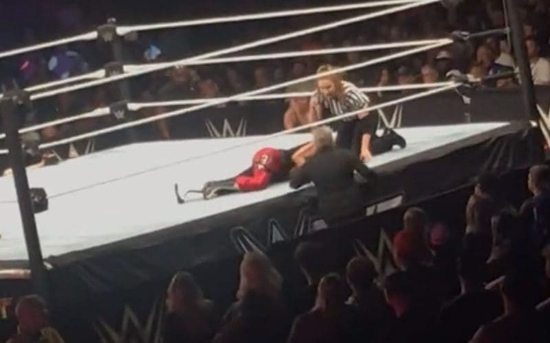 During the WWE live event in Salisbury, MD on Saturday night, there was a potential injury incident involving Bayley. At this time, nothing has been confirmed, but it could be serious.