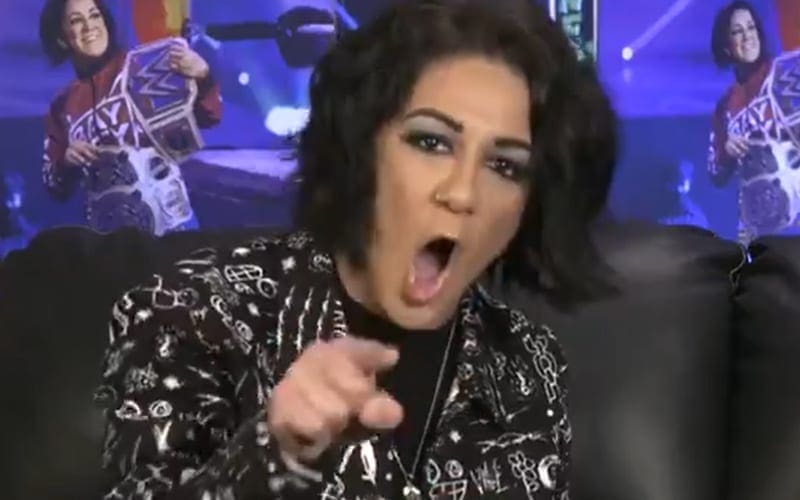 Bayley saw a sign in the SmackDown crowd that wished her the best. This sign also called her an “idiot,” and that wasn’t lost on her at all. This sign said, “Get Well Soon Bayley, “You Little Idiot!!”