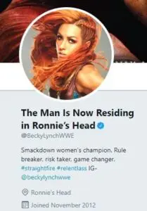 Lynch recently changed her actual Twitter name to “Tha Man Is Now Residing In Ronnie’s Head.” It’s also notable that her account’s location is now “Ronnie’s Head” as well.