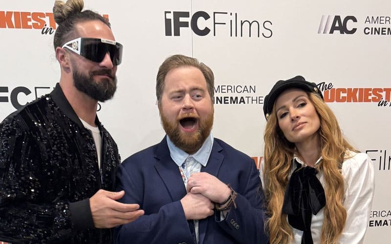 As seen by photos making rounds on social media, Becky Lynch was spotted alongside her husband Seth Rollins, as well as Paul Walter Hauser, as they attended an early screening of Luckiest Man in America. The film stars Walter Hauser and it was clear that Lynch was happy to be there for the screening.