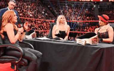 Becky Lynch made her point by posting a picture from the contract signing on RAW this week with arrows pointing to her titles while calling them her “twins.” Then she put arrows pointing to her competitors at Money In The Bank while saying “McMahon’s twins.”