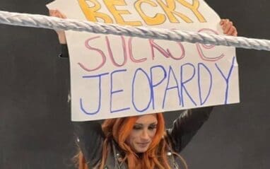During the WWE house show in Peoria, Becky Lynch squared off against Zoey Stark in a singles match. After the match, Becky Lynch held up a sign that said ‘Becky Sucks @ Jeopardy.’ Lynch acknowledged that to be the case but then stated that she is good at fighting.