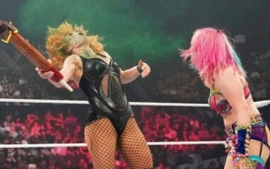 In the end, Asuka got the win after spraying green mist on Becky Lynch’s face. This was preceded by Sasha Banks and Naomi walking out on WWE as RAW went on air.