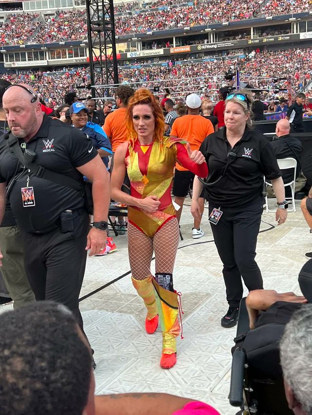 In the end, Bianca Belair successfully retained her title. Many fans online noticed that Becky Lynch wasn’t looking comfortable with her right arm. As revealed by a new photo online, Becky Lynch could be seen nursing her right shoulder, as she might’ve been injured.