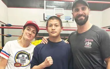 As revealed by a photo making rounds online, Becky Lynch and Seth Rollins were spotted with Antonio Inoki’s grandson Naoto Inoki at a wrestling school, as they were helping him train inside the squared circle.
