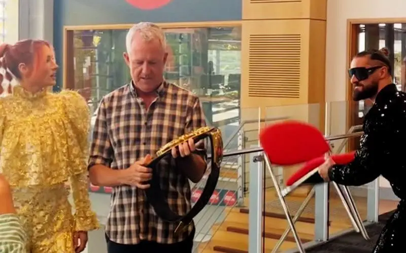 Becky Lynch and Seth Rollins recently concluded an interview with ABC Perth in Australia ahead of WWE Elimination Chamber, but things took an unexpected turn when the interviewer requested a photo.