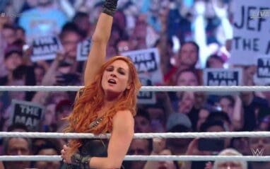 Becky Lynch’s music was the first to break out during the actual Royal Rumble pay-per-view to pop the crowd. Her mission was to re-capture the SmackDown Women’s Title and she looked concentrated on accomplishing that goal.