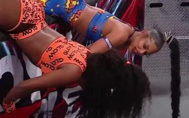 “That’s definitely one of my favorite moments of the match. I got to be in the ring with Naomi last year for the Royal Rumble for a very short time. But having that moment with her, we both almost being eliminated and dangling off of the rope and realizing like, ‘Look, if we got to do this together, we have to work together"