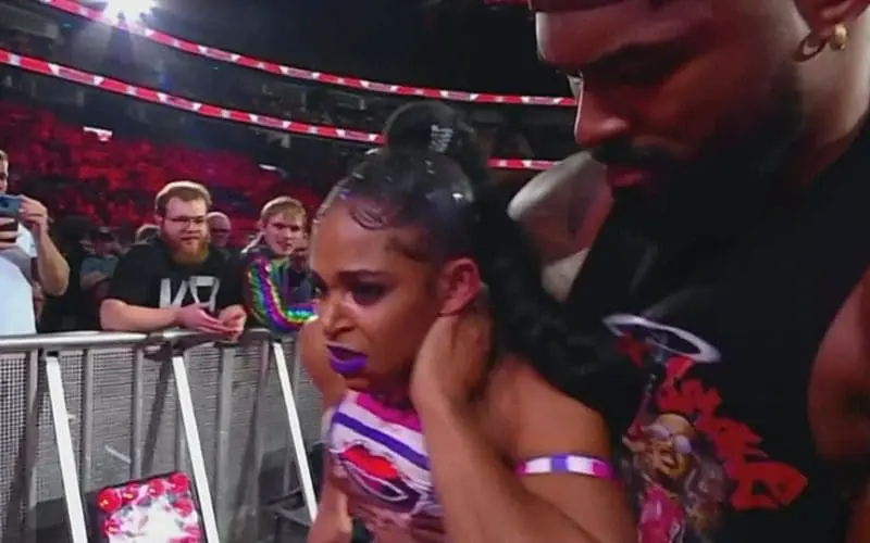 Bianca Belair bled from her mouth as a result of Bliss’ attack. She was escorted to the back by her husband Montez Ford. The one-half of The Street Profits was visibly distraught her his trios match against Sami Zayn and The Usos.