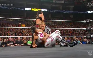 Belair tried to hit a dive, but had to fight off Duke. Then she missed the dive and ended up in another Kirifuda Clutch. Belair fought to get free as the crowd chanted “EST.” Belair got to her feet, but Shayna didn’t let go. Finally, Bianca Belair fell to the mat and the referee called for the bell.