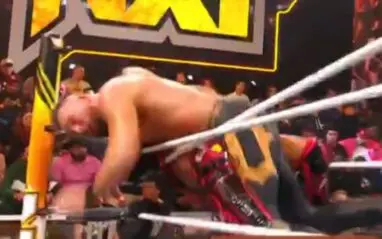 The two fought around the ring for a bit, and then they went inside. This is when things went wrong. During a whip into the turnbuckle, Dijak was cut open on the side of his head, and the entire turnbuckle broke.