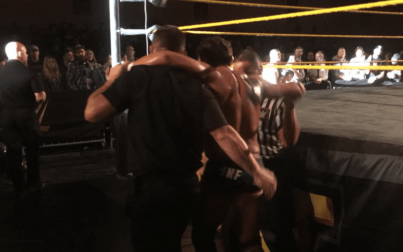 While Fish was teaming with O’Reilly against Heavy Machinery in an NXT Tag Team Championship Match, referee Drake Wuertz threw up the “x” signal after Fish rolled out of the ring. After Fish was attended to by medical personal, he was assisted to the backstage area.