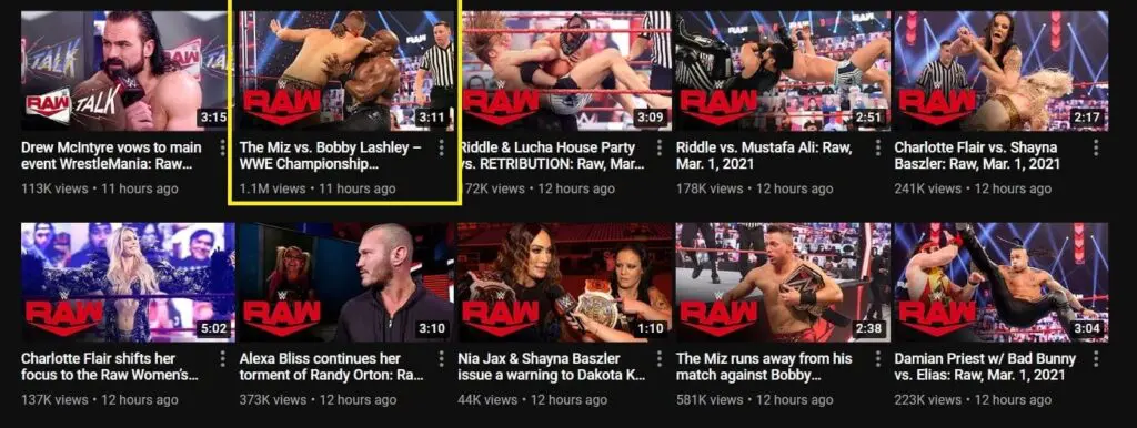 Even the Bad Bunny videos were dwarfed by Lashley’s title win. One Bad Bunny video of a backstage segment has 96k, and the match where he stood at ringside has just over 223k as of this writing.