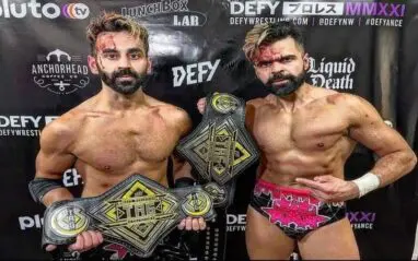Gurvinder and Harvinder, who now go by the name of Blondz of Bollywood, beat Midnight Heat in a ladder match at DEFY Wrestling’s DEFYYearV show. The event emanated from Washington Hall in Seattle.
