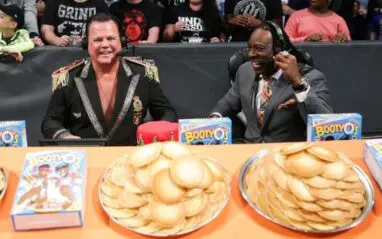 SmackDown 1000 was a fun night and we saw some legends that we don’t see every week. One notable segment came when Jerry “The King” Lawler and Booker T joined the commentary on a table made up to look like The New Day sponsored it. The plan was to cut to Booker and King talking about the match like they were doing commentary that whole time without anyone listening.