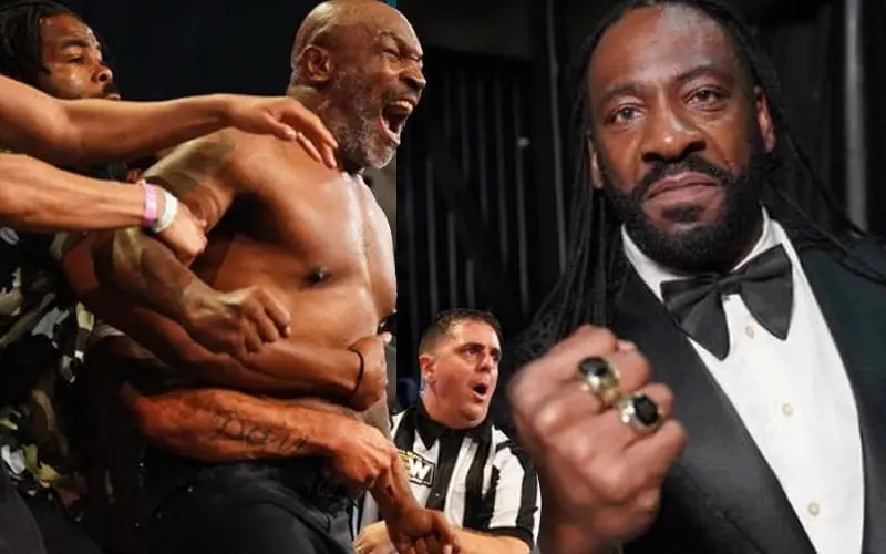On a recent Hall Of Fame podcast, Booker T spoke about Mike Tyson’s angle in AEW. He stated that there’s a war going on and WWE saw Mike Tyson and Henry Cejudo on Dynamite.
