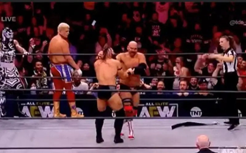 As reported earlier, fans in attendance during the main event of this week’s episode of AEW Dynamite said the r-word to Cody Rhodes on numerous occasions.