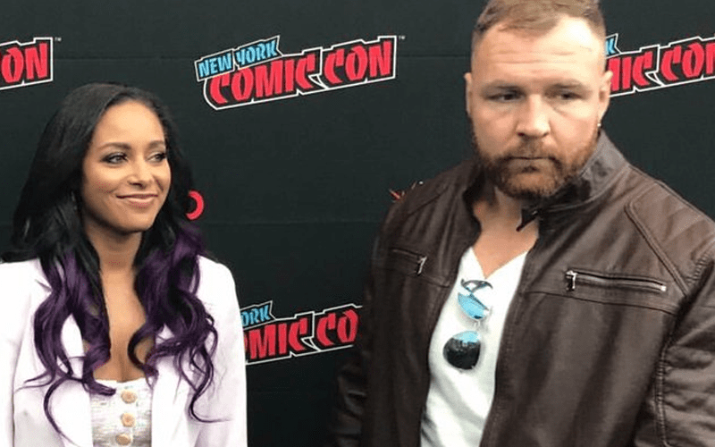 A lucky photographer snapped a shot of Jon Moxley and Brandi Rhodes in front of the NYCC backdrop. Rhodes had a great caption to go along with this photo.