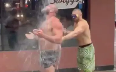 Rawley posted two videos of himself and Braun Strowman having a little fun in the rain. It looks like they were sudsing down and getting clean on the sidewalk while standing under a water spout.