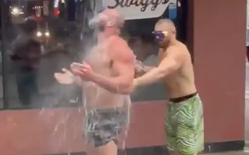 Braun Strowman and Mojo Rawley were both released from WWE, but that won’t stop them from having some fun. Two were recently caught in a little rain, but they made the most of it by using that opportunity to bathe a little bit.