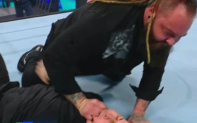 Bray Wyatt appeared on SmackDown for an in-ring promo tonight. Wyatt got in the ring but struggled to communicate with the crowd. He got on his knees as if trying to regain his composure.