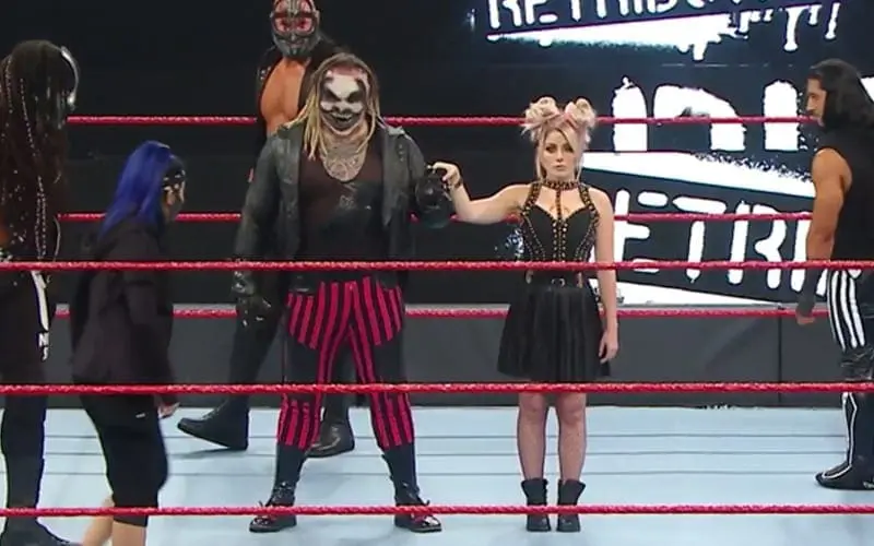 Alexa Bliss started off the show alone in the ring bathed in a creepy red light. She told everyone to “let him in,” and then The Fiend made his entrance. The ThunderDome changed display, and Retribution came out to new music next.