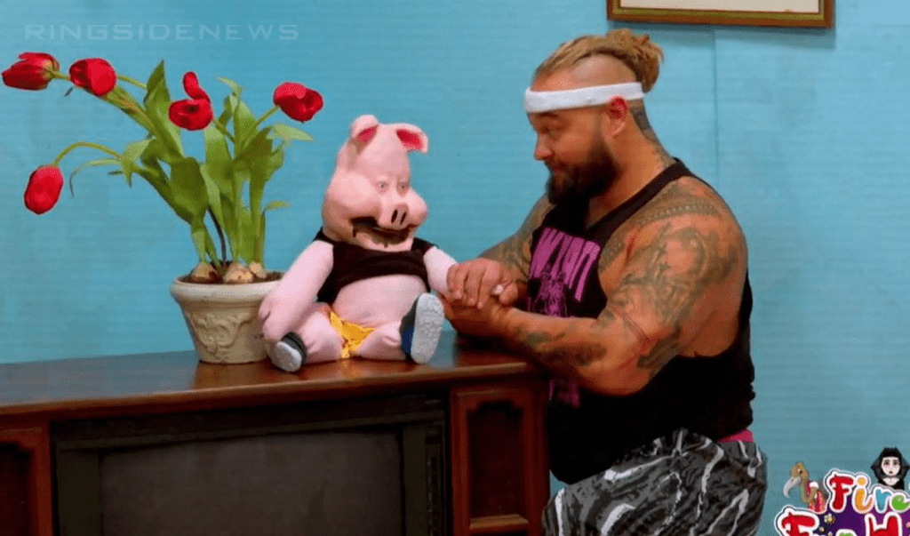 On the Firefly Fun House segment this week on RAW, Wyatt introduced a pig puppet named Huskus The Pig Boy which was an obvious reference to his former Husky Harris character. Then a Vince McMahon puppet appeared and threatened his job if he didn’t get into shape. This was obviously something that Wyatt fought hard to prevent from happening.