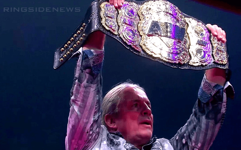 AEW introduced the All Elite World Championship at Double Or Nothing, but in a very big piece of information Bret Hart was there to do the honors. The crowd chanted “Holy sh*t” as Bret thanked AEW for giving him the honor of introducing this beautiful belt.