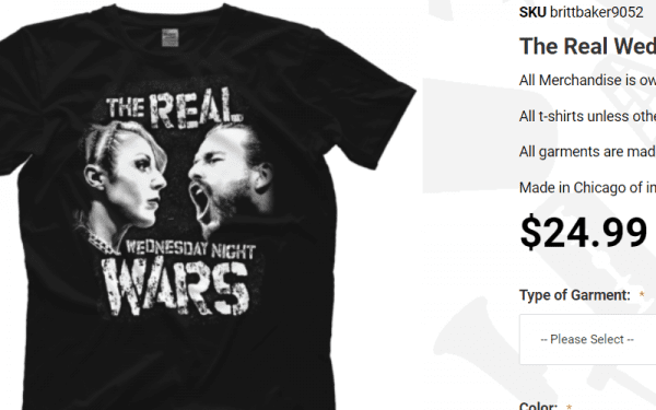 Baker said at Starrcast III that she wants to be known as more than Adam Cole’s girlfriend, but she can’t pass up a great merchandising idea. AEW’s resident dentist is now selling a t-shirt that says “The Real Wednesday Night Wars” with both her and Adam Cole’s face on it.