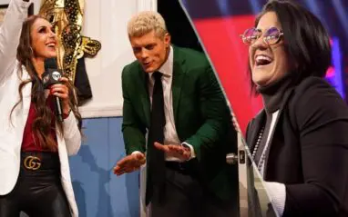 Cody Rhodes was a good first guest for Britt Baker on Dynamite, but odds are he’s not traveling back to WWE for a talk show segment. It does make us wonder how Bayley would react to having the American Nightmare ring her doorbell.