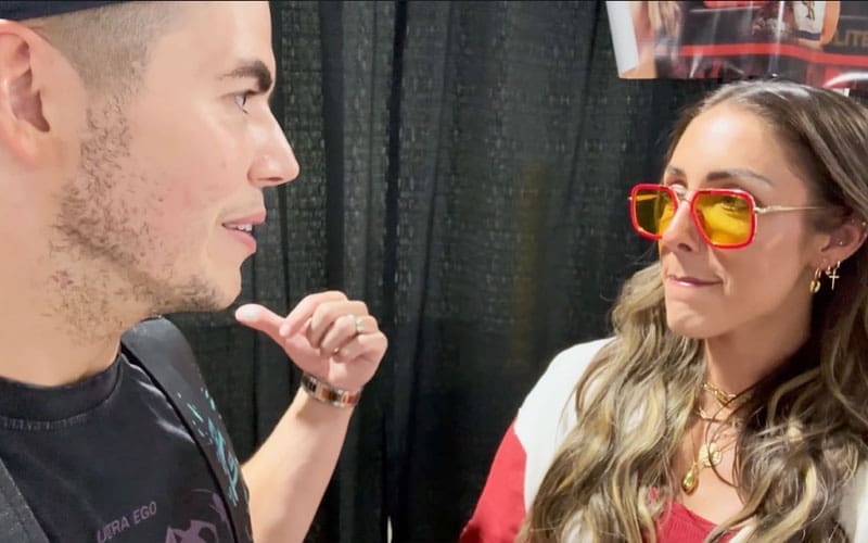 While speaking during Sammy Guevara’s vlog, Sammy Guevara caught up with Britt Baker at Animeverse as he told her he hadn’t seen her in a very long time. Towards the end of their meeting, Sammy Guevara told Britt Baker it was good to see her and nice to catch up, saying, “Okay, Britt, well it was good to see you, good to talk to you.”