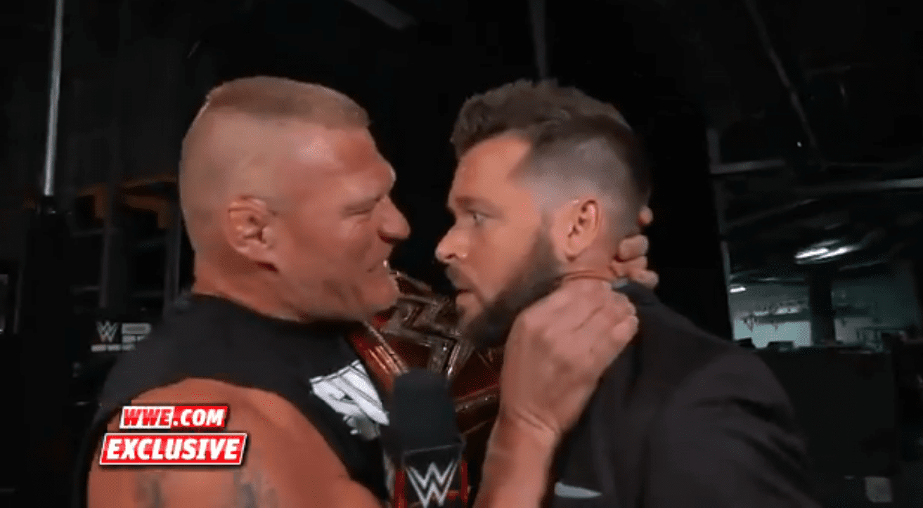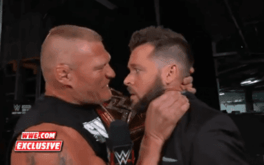 It seems like Heyman and Angle weren’t the only victims that Lesnar claimed this past Monday. While heading to the backstage area, Lesnar was approached by Mike Rome for an interview.