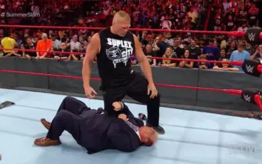 Brock grabbed Heyman’s face and pushed him to the mat. Heyman said Lesnar was hurting the advocate, but Lesnar wanted to make a point.