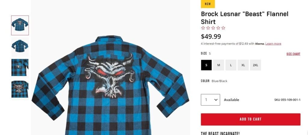 “No Brock Lesnar outfit is complete without this “Beast” Flannel shirt. Show everyone you’re the Beast Incarnate with this official flannel shirt!”