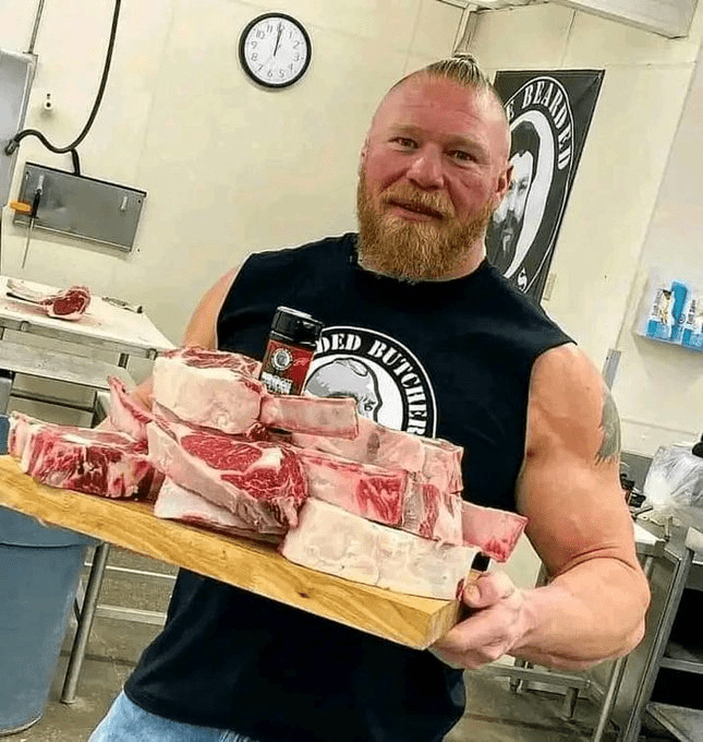 Brock Lesnar is also a beast in real life, according to many. He loves hunting and fans are aware of that as well. Lesnar was recently spotted chopping up some meat as part of the Bearded Butchers.