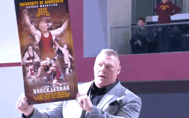 Brock Lesnar stayed and watched the University Of Minnesota’s match against Wisconsin. His Golden Gophers went on to win that day as well. Perhaps having Lesnar and his 55-3 record around helped give them some extra motivation.