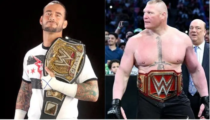 In a pretty big form of irony, Brock Lesnar officially tied CM Punk’s record as WWE Champion on the day after Punk’s 2nd loss in UFC.