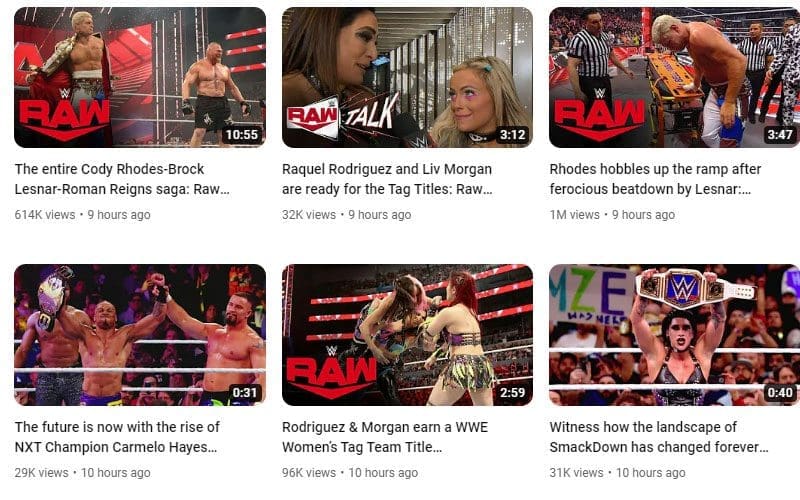 WWE has a very large fan base, and a substantial Twitter following of 94.2 million subscribers, but their videos seldom break the million marker on views.