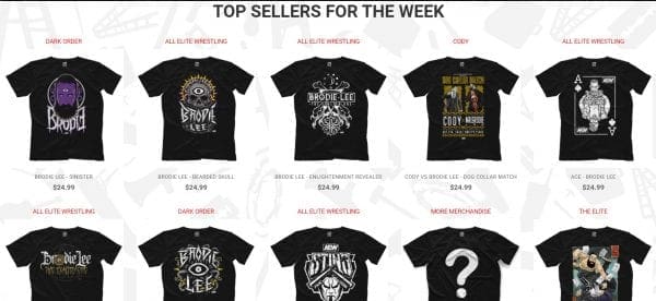 You can check out the graphic below to see the top 10 t-shirts of the week. The Dark Order’s “Join Dark Order” t-shirt came in #11. Also, any merchandise bought from CM Punk and Mick Foley will see proceeds go to Brodie Lee’s family until the end of January.