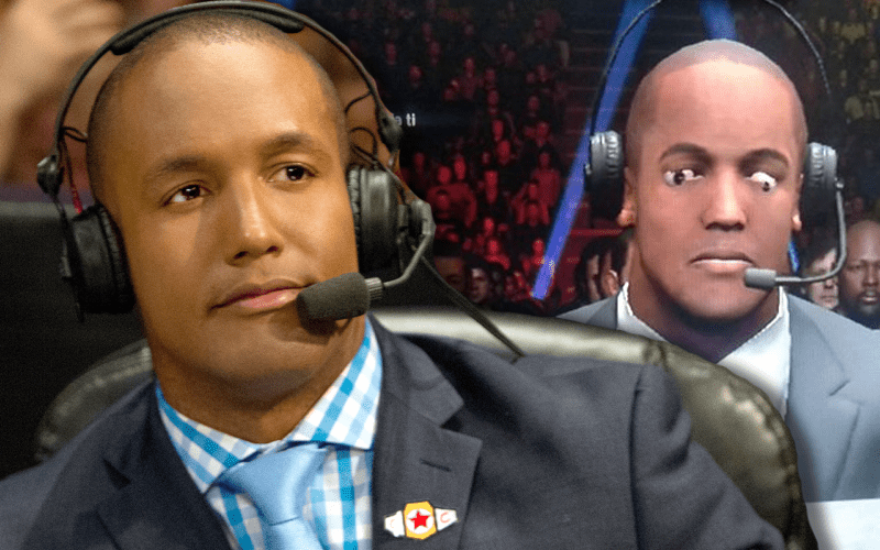 The former blue brand announcer called attention to the googly eyes that 2K gave him in the new game. It reminded him that he needs to see his eye doctor quickly.