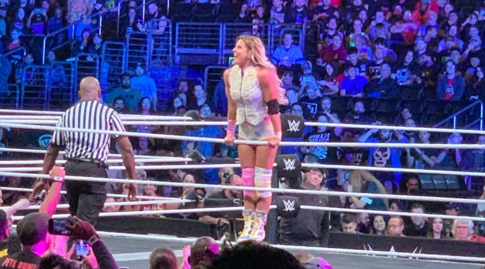 You might have read the title confused because LeRae didn’t perform at NXT WarGames, but she was a part of the action before the night started. Therefore she did perform in a ring which had an identical ring next to it for the big main event double cage match.