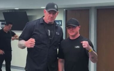 Canelo stood side-by-side with the Deadman, both with fists raised, as cameras snapped away. With Canelo repping his hometown of Guadalajara and Taker in his signature all-black look, the moment instantly became one of the night’s most talked-about surprises.