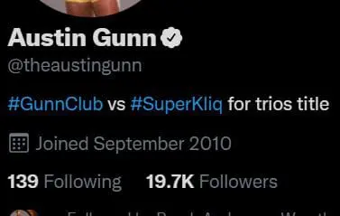 The Young Bucks only tweet out enough to let fans know that they should check their bio for a new update. Austin Gunn borrowed this tactic as he laid down a challenge for the Superkliq.