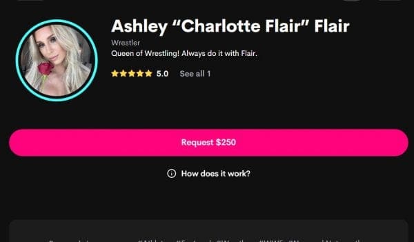 Flair signed up for a Cameo account, and she’s charging $250 for a video. This might seem like a lot, but Alexa Bliss charges $400. On that note, click here to watch a recent Cameo from Bliss where she had to turn down a date from a fan who dropped that cash just to shoot his shot with the Five Feet Of Fury.