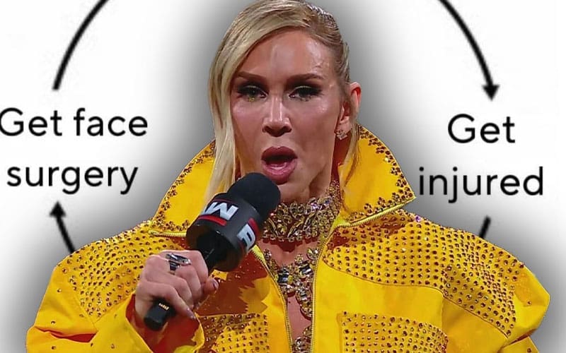 The now-viral meme, which features Charlotte’s face at the center of a circle, includes the text: “Get title shot → Get injured → Get a divorce → Get face surgery → Get title shot”—mocking her history with title opportunities, injuries, cosmetic surgery rumors, and personal relationships.
