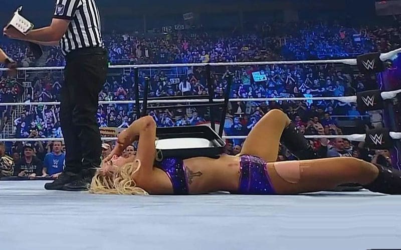 WWE announced that Charlotte got her radius fractured during the “I Quit” match against Ronda tonight at WrestleMania Backlash. Kayla Braxton made the announcement backstage.