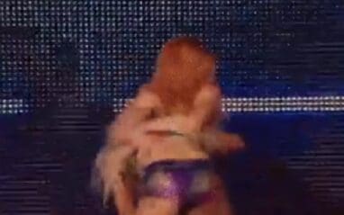 Flair soon speared Lynch through the LED wall in the entrance and emerged with her arm covered in blood. Corey Graves said when SmackDown Live came back from commercial that Flair suffered 3 or 4 severe cuts on her arm from the busted LED wall spot.